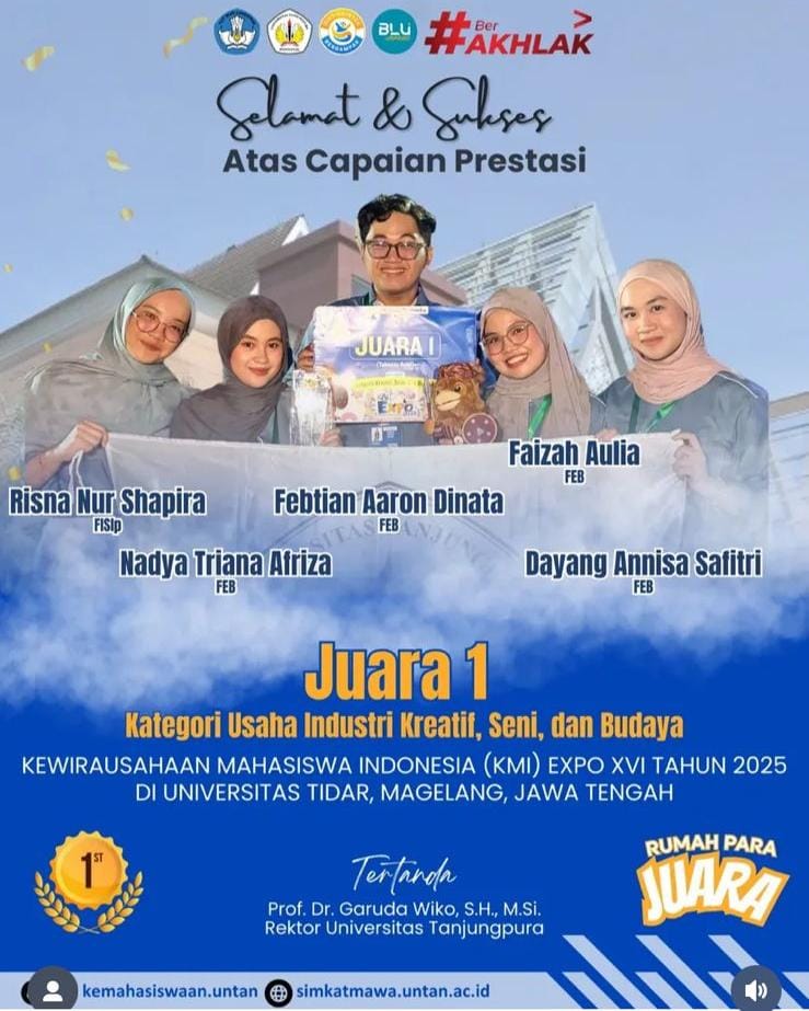 Prestasi Tim Mahasiswa - a.n. Risna Nur Saphira FISIP UNTAN - Juara 1 Kewirausahaan Mahasiswa Indonesia EXPO VI Tahun 2025 di Universitas Tidar