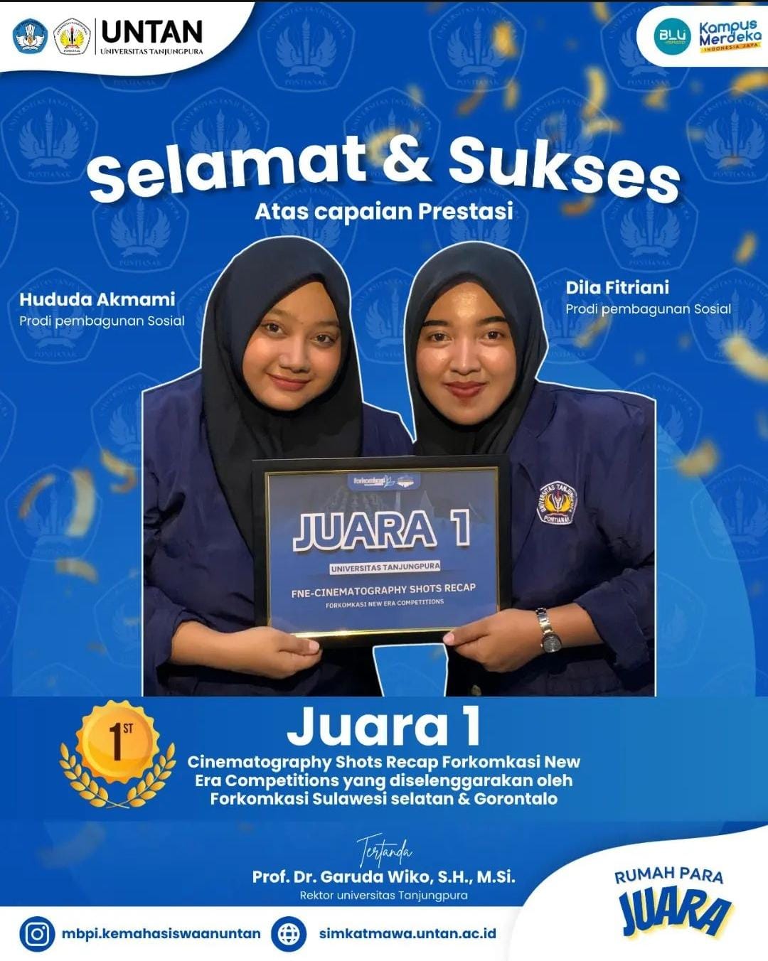 Prestasi Mahasiswa: Mahasiswa Pembangunan Sosial Universitas Tanjungpura Raih Juara 1 Cinematography Shot Tahun 2024 di Gorontalo